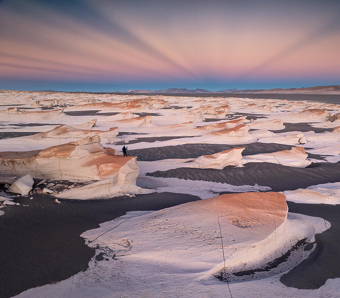 Dzień 4: Campo de Piedra Pómez - Dzień, przez który ludzie rezerwują tę wyprawę. Białe, pumeksowe formacje skalne ciągnące się po horyzont — krajobraz, który wygląda jak inna planeta. Jedziesz przez nie 4x4. Cisza. Nikt. Tylko Ty i ta przestrzeń.